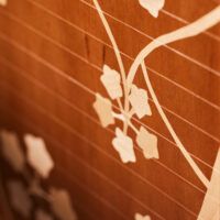 This piece is a personal take on the French file cabinets of the late 19th Century. The tambour door contains a marquetry motif inspired by Gaspar Homar’s art nouveau designs. The inside is made of hard maple and cedar of Lebanon, which yields a light appearance and a sweet lingering scent. It can be used as a middle-of-the-room piece or as an ambience separation.To this effect, the back was gilded, echoing the front motif. The marquetry was designed and executed in collaboration with Beatriz Zuazo and Xènia Garrofé. This piece is shortlisted in the Maker Of The Year Award 2023, World category.